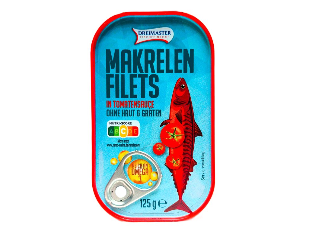 DREIMASTER MAKRELEN FILETS in Tomatensauce ohne Haut & Gräten - 125g