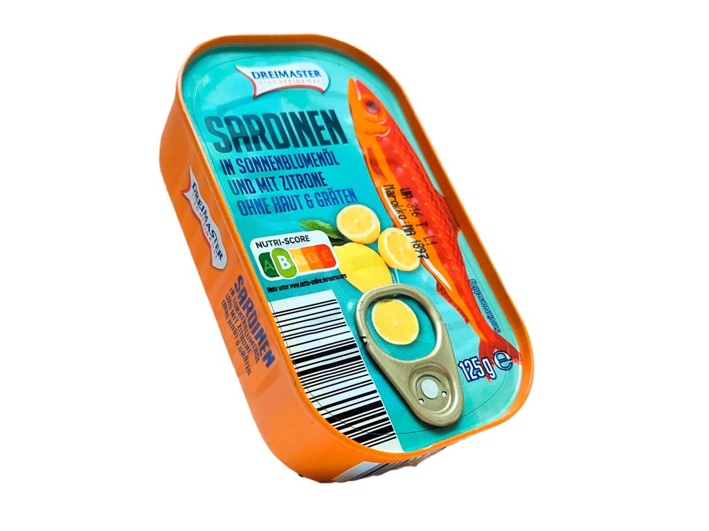 Složení: 75% sardinek, 22% slunečnicového oleje, 2% citronu, jedlá sůl.