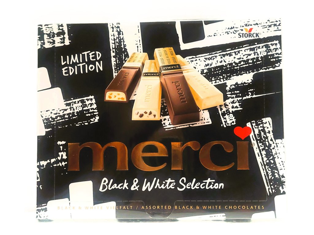 Složení: cukr, kakaová hmota, kakaové máslo, PLNOTUČNÉ SUŠENÉ MLÉKO, rostlinné tuky ( palmový a bambucký), MANDLE ( 5,2%), SUŠENÁ SMETANA, MÁSELNÝ TUK, SUŠENÉ ODSTŘEDĚNÉ MLÉKO, MLÉČNÝ CUKR, SYROVÁTKOVÝ PRODUKT, rýžová mouka, PŠENIČNÁ MOUKA, emulgátor Lecitin ( SÓJA), SUŠENÉ PODMÁSLÍ, nízkotučné kakao, PŠENIČNÝ PROTEIN, aroma, sůl, PŠENIČNÝ SLAD, kypřící složky ( hydrogenuhličitan amonný, hydrogenuhličitan sodný, uhličitan draselný). Kakao: 28% alespoň v bílé čokoládové části a 50% v tmavé čokoládové části.